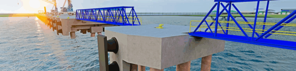 A modernização do Cais 3 avança em diversas frentes. As atividades incluem a instalação de colunas de contenção parcial para o alargamento do Trecho 1, a instalação de afastadores de navios e o início da construção dos dolfins de atracação e amarração, além de atividades de recuperação, reforço estrutural e pavimentação da retroárea.