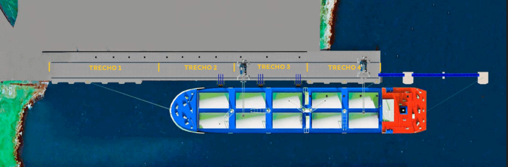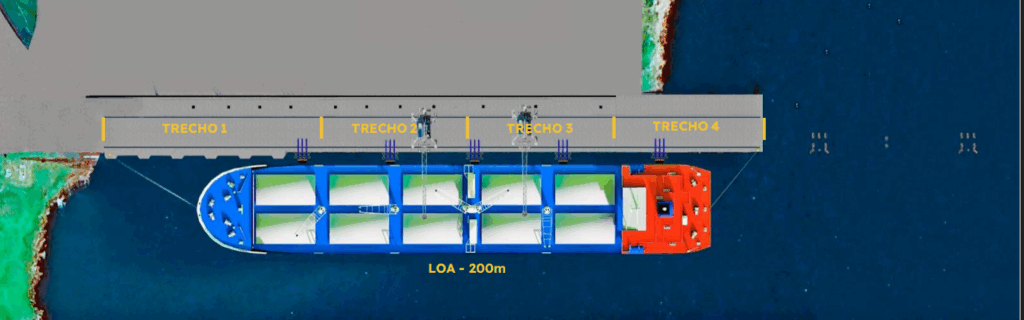 Prevista para ser entregue em 2027, a obra permitirá o recebimento de navios maiores, passando do limite atual de cerca de 200 metros de comprimento, para cerca de 270 metros. Além disso, a intervenção na infraestrutura do berço vai tornar possível a instalação de equipamentos maiores, mais ágeis e mais modernos de movimentação de cargas.